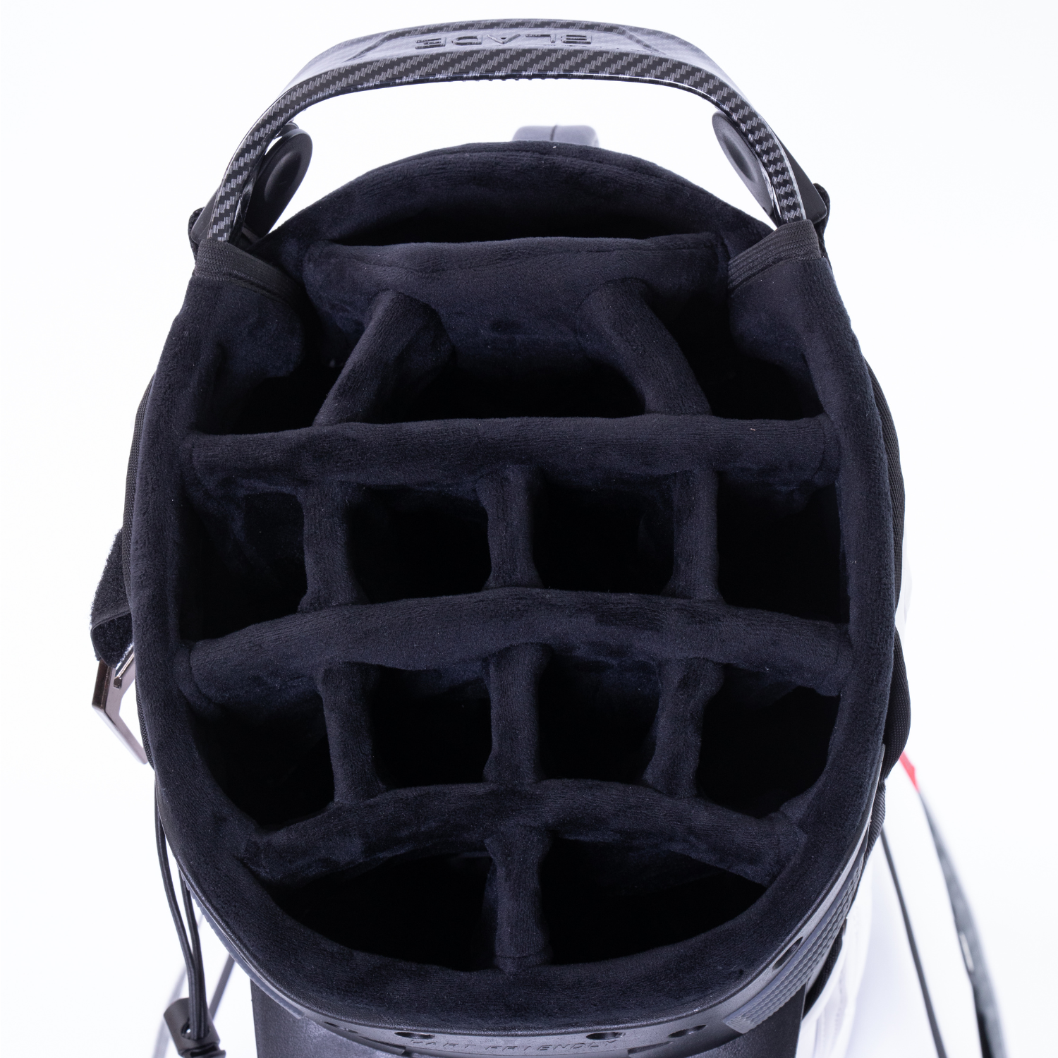 - Cabezal Cart-Friendly de fibra de carbono, 14 divisiones. Máxima estabilidad en carro. Revestido en terciopelo Tour Premium para proteger tus varas.